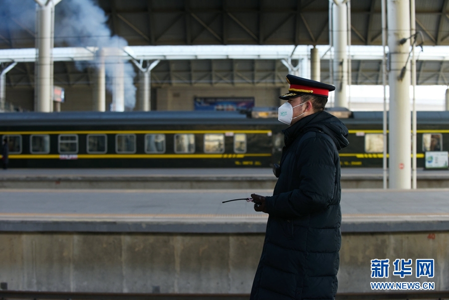 工作人員等待旅客列車進站。新華網 李俊 攝