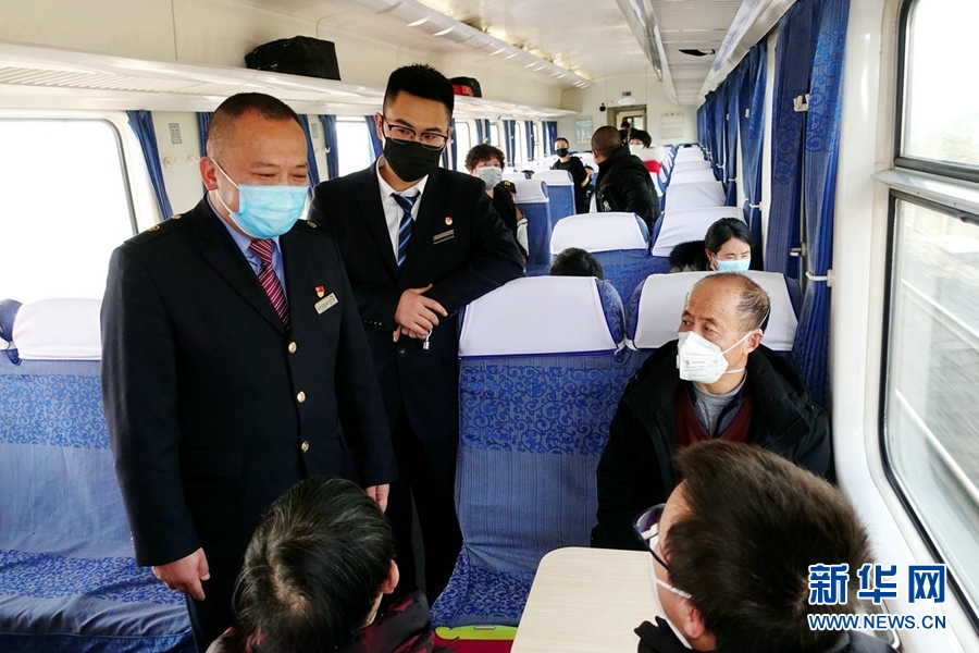 西寧客運段職工問詢旅客身體情況。新華網 郝寶君 攝
