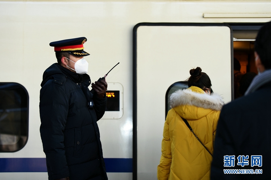 工作人員引導旅客乘坐列車。新華網 李俊 攝