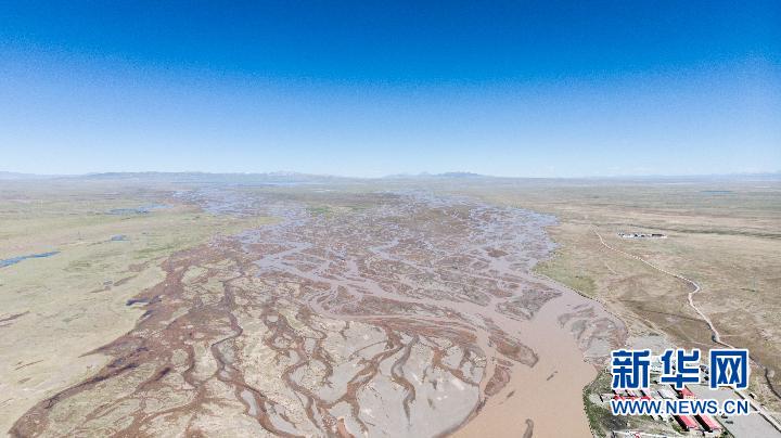 這是位于青海省格爾木市唐古拉山鎮(zhèn)的長(zhǎng)江正源沱沱河河道(2019年8月9日無(wú)人機(jī)拍攝)。新華社記者 吳剛 攝