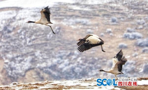 首批10余只黑頸鶴飛回高原安家。榮修楚臣 攝