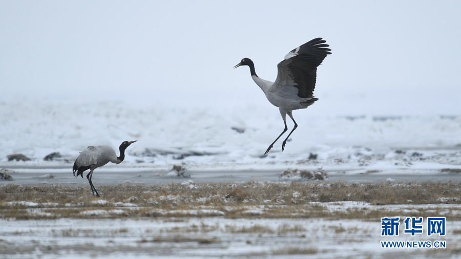 4月17日,受冷空氣影響,青海省海北藏族自治州剛察縣迎來一場春雪,兩只雪域“精靈”黑頸鶴在青海湖仙女灣景區(qū)“與雪共舞”,上演青海湖畔最美“雪中情”。[詳細(xì)] -
