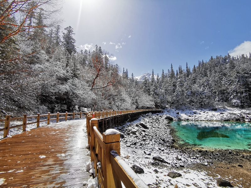 日前,四川九寨溝景區(qū)迎來一場瑞雪,整個景區(qū)銀裝素裹,遠(yuǎn)處層巒疊嶂的山峰、松樹、紅色的楓葉與皚皚白雪完美融合倒映在水中。雪后九寨溝,宛若遺落人間的冰雪王國。[詳細(xì)]