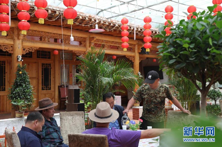6月4日,在青海省海南藏族自治州貴德縣尕讓鄉(xiāng)松巴村,游客在農(nóng)家樂內(nèi)等待用餐。新華社 央秀達(dá)珍 攝
