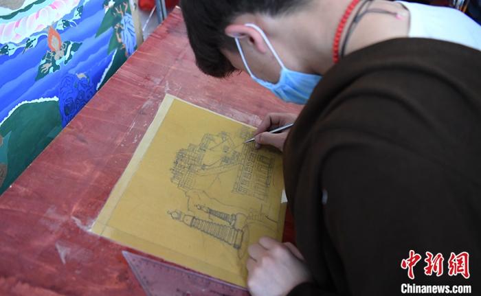 6月中旬,唐卡畫初級班里一名學(xué)生正在進(jìn)行唐卡畫素描練習(xí)。中新社記者 劉忠俊 攝