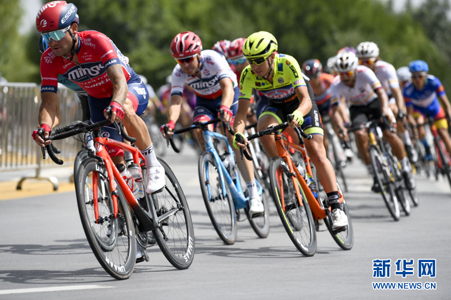 2019年7月27日,參賽車手在比賽中。當(dāng)日,第十八屆環(huán)青海湖國(guó)際公路自行車賽結(jié)束最后一個(gè)賽段——寧夏銀川繞圈賽的角逐。新華社 馮開華 攝