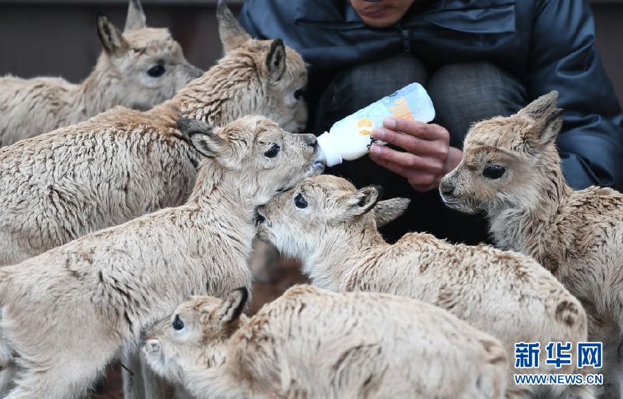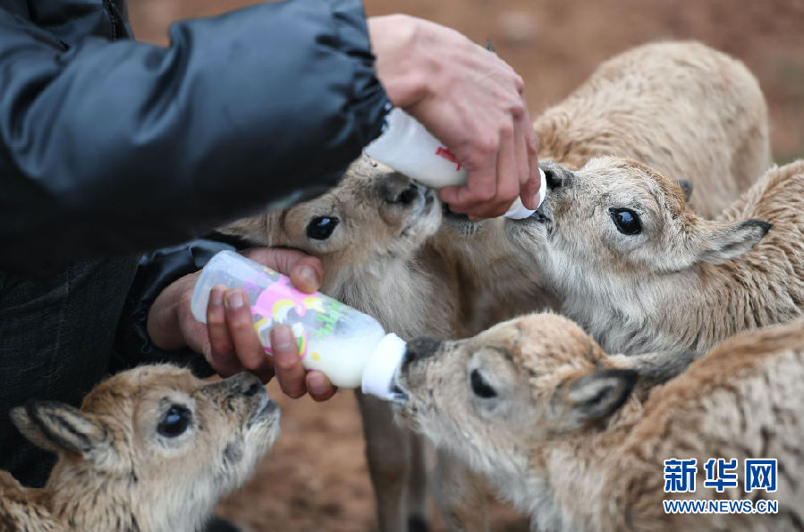 為讓11只藏羚羊幼仔盡快適應(yīng)環(huán)境、健康成長,卓乃湖保護(hù)站安排專人,在特定區(qū)域?qū)ζ溥M(jìn)行喂養(yǎng)。記者在卓乃湖保護(hù)站看到,每日早、中、晚,巡山隊(duì)員才文多杰會按時(shí)給小藏羚羊喂奶,每只小藏羚羊都有自己的“專用”奶瓶。