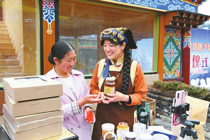 當(dāng)天,由小金縣委、縣政府舉辦的小金縣農(nóng)村帶貨能手培訓(xùn)班在雙橋村網(wǎng)紅孵化基地正式開班。小金縣委宣傳部相關(guān)負(fù)責(zé)人說,開辦專業(yè)培訓(xùn)班,是要將小金縣農(nóng)牧民帶貨能手、熱衷于網(wǎng)絡(luò)直播事業(yè)的農(nóng)牧民培育成本土網(wǎng)紅,并以此建立“村村有網(wǎng)紅,人人可參與”的電商服務(wù)體系。