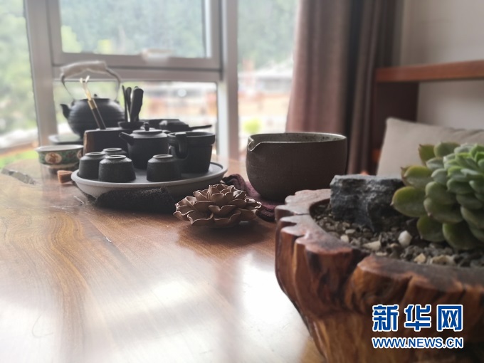 傍晚時分走進高吉村,錯落有致的民宿散落山間,落地窗透出暖黃色的燈光。房間里藏式床鋪與原生態(tài)家具相映成趣,靠窗的榻上擺放著茶幾、茶具、綠植,一覽無余的窗外夕陽半落、云飛鳥散。游客接待中心也一改傳統(tǒng)樣式,樓上是純木質、開放式餐廳,樓下是小橋流水、曲徑通幽的水景,游客們三三兩兩的喝著咖啡,享受著詩意的人生。