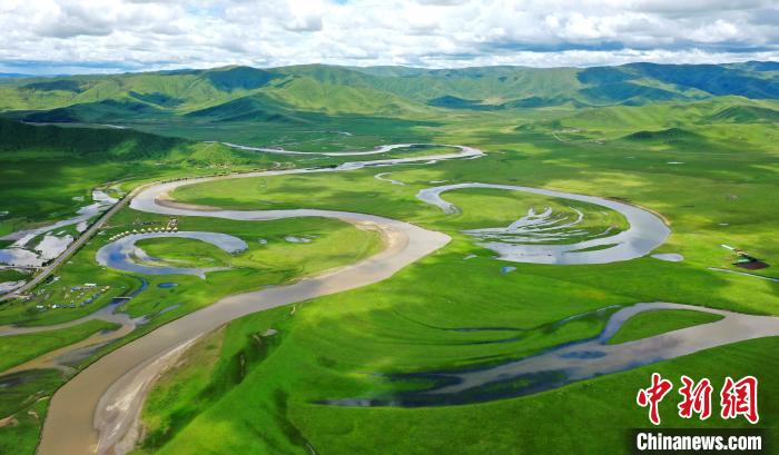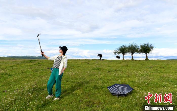 夏日的四川省阿壩州紅原草地,綠草如茵,廣袤無垠,藍天、白云、牛群構成了一幅幅美麗的圖畫,美不勝收。