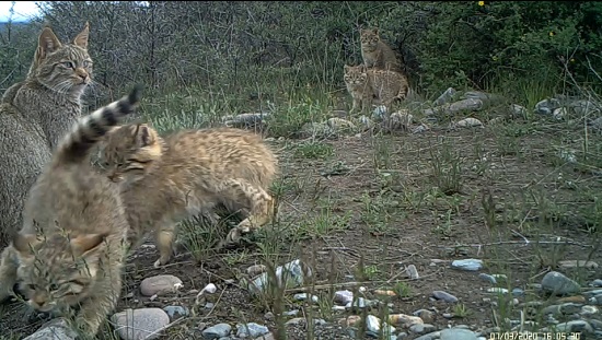 據(jù)了解,近日祁連山國家公園青海省管理局聯(lián)合北京大學(xué)開展荒漠貓專項調(diào)查時,從野外回收的紅外相機數(shù)據(jù)中發(fā)現(xiàn)了一組荒漠貓撫育幼崽的珍貴視頻畫面。視頻中一只雌性荒漠貓安靜的守護在旁邊,看著4個孩子相互打鬧、嬉戲玩耍,4只幼崽萌態(tài)十足,對大自然充滿好奇。