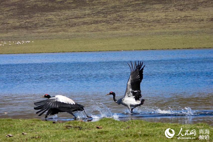 2019年首批黑頸鶴遷抵青海玉樹嘉塘草原
