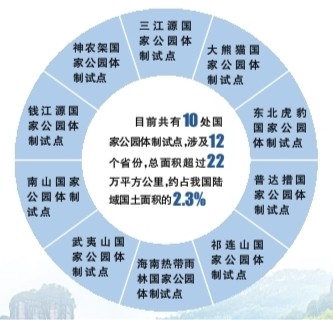 自2015年以來,我國(guó)開展了東北虎豹、祁連山、大熊貓、三江源、海南熱帶雨林、武夷山、神農(nóng)架、普達(dá)措、錢江源、南山等10處國(guó)家公園體制試點(diǎn)。試點(diǎn)區(qū)將各級(jí)各類自然保護(hù)地整合劃入國(guó)家公園試點(diǎn)區(qū)范圍,對(duì)山水林田湖草等自然生態(tài)系統(tǒng)實(shí)行統(tǒng)一管理、整體保護(hù)和系統(tǒng)修復(fù)。