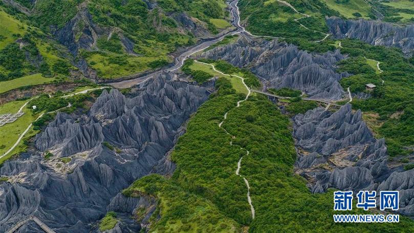 8月21日在四川省甘孜藏族自治州道孚縣拍攝的墨石公園一景(無人機(jī)照片)。新華社記者 王曦 攝