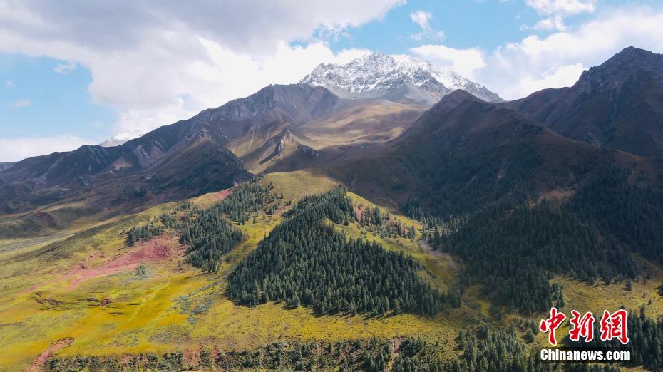 9月9日,航拍祁連山國(guó)家公園青海片區(qū)油葫蘆自然風(fēng)景區(qū)美景。初秋時(shí)節(jié),祁連山國(guó)家公園青海片區(qū)草地漸黃,天高云淡,勾勒出一幅色彩斑斕的秋日美景圖。中新社記者 李江寧 攝