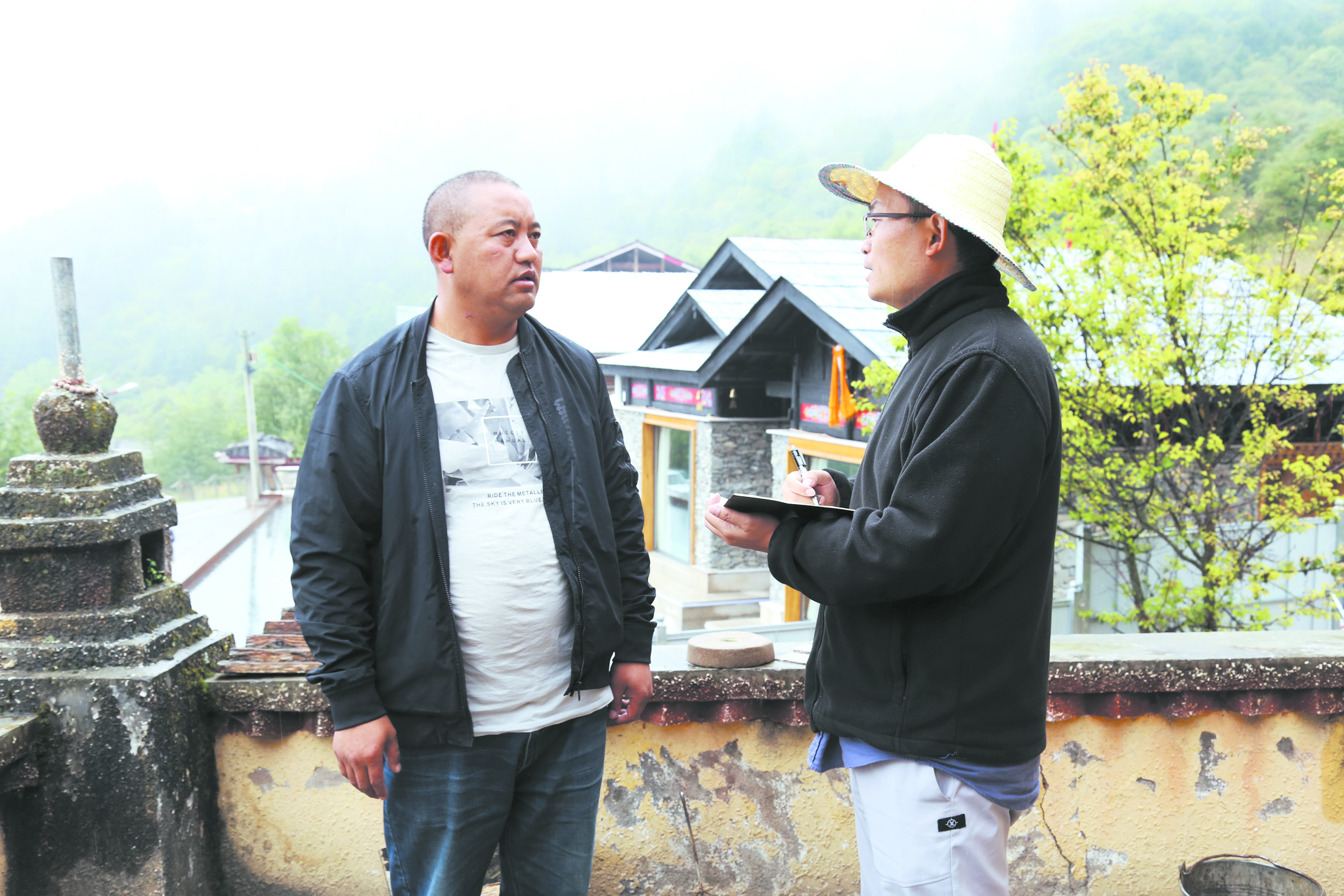 記者在九寨溝縣采訪。戴艾岑 攝