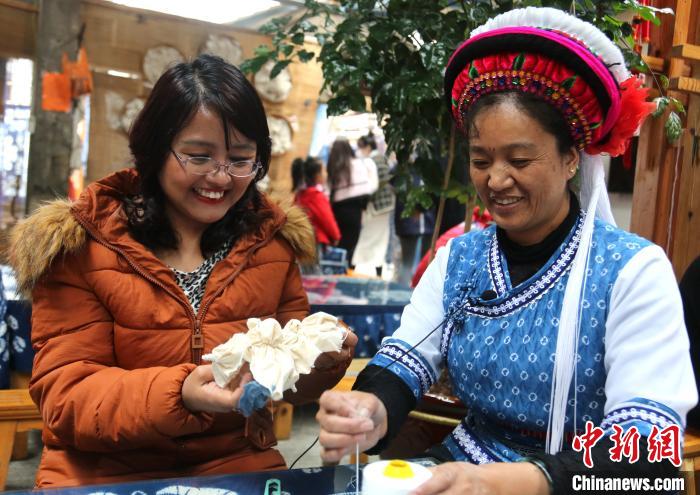 圖為云南省大理州白族老人展示手工絕活。張?zhí)砀?攝