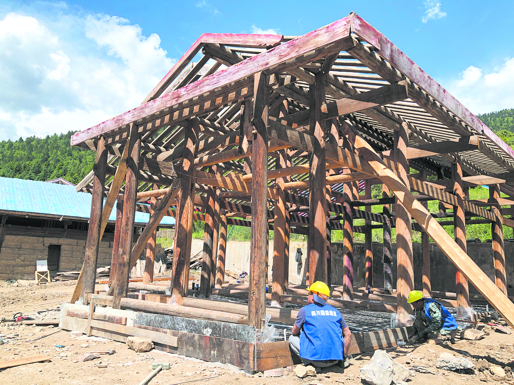 浮在水面的新藏寨竣工的第一棟民宿