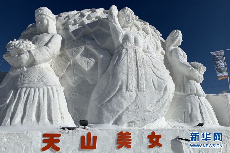 圖為精美的“天山美女”雪雕。新華網(wǎng) 馬洪婷 攝