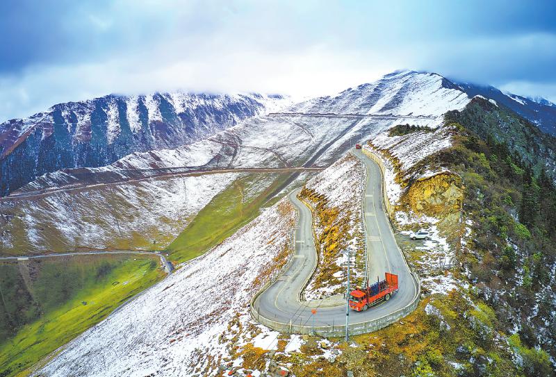 車輛沿著蜿蜒的山路前行,不一會兒,眼前已是白雪皚皚。60多公里路程走了近2個小時,記者來到位于夾金山下的藏寨——磽磧,再往前就是紅軍長征翻越夾金山紀念地。
