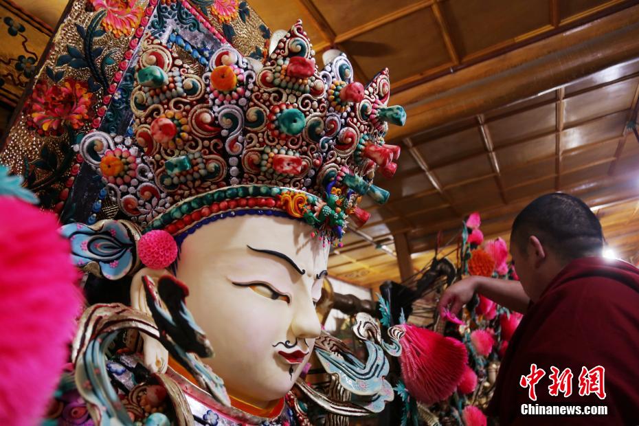 圖為塔爾寺下花院藝僧為酥油花主佛做最后修飾。張?zhí)砀?攝