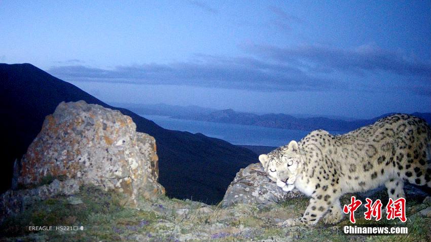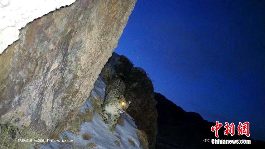 圖為相機(jī)夜幕下抓拍到的雪豹活動畫面。青海原上草自然保護(hù)中心供圖