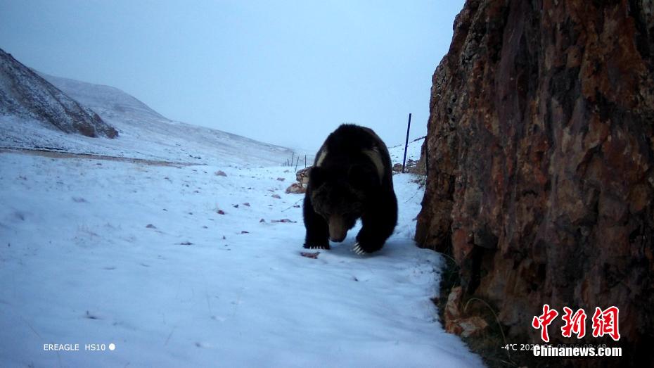 圖為相機(jī)抓拍到的棕熊活動畫面。 青海原上草自然保護(hù)中心供圖
