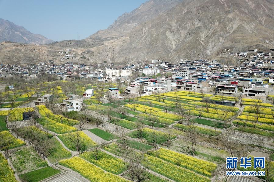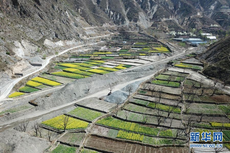 這是3月17日在舟曲縣城關鎮(zhèn)境內拍攝的油菜花(無人機照片)。新華社記者 范培珅 攝
