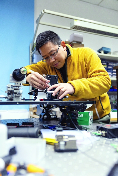 沉浸于強度關(guān)聯(lián)成像研究的陳明亮。周俊超 攝