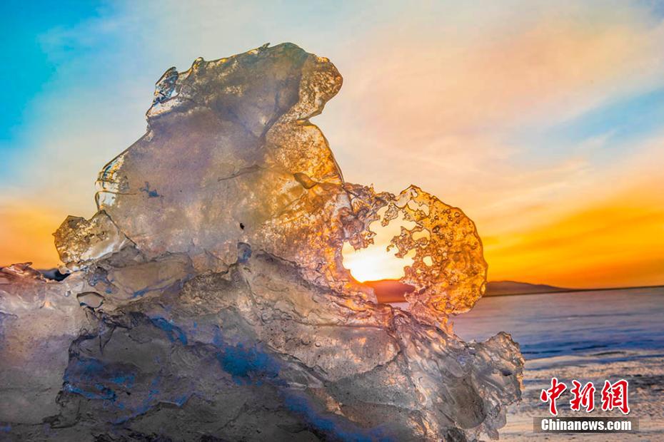 湖面上隆起的冰塊也在夕陽照射下波光粼粼,勾勒出一幅絕美畫卷。趙海梅 攝