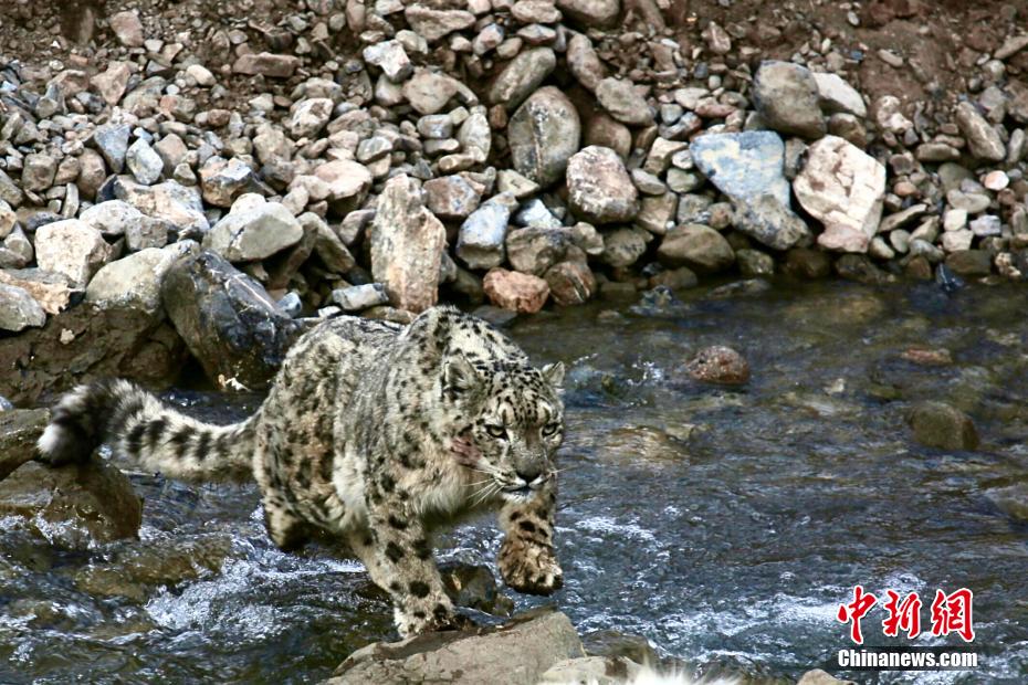 圖為渡河雪豹展現(xiàn)靈動(dòng)身姿。張蓉芝 攝