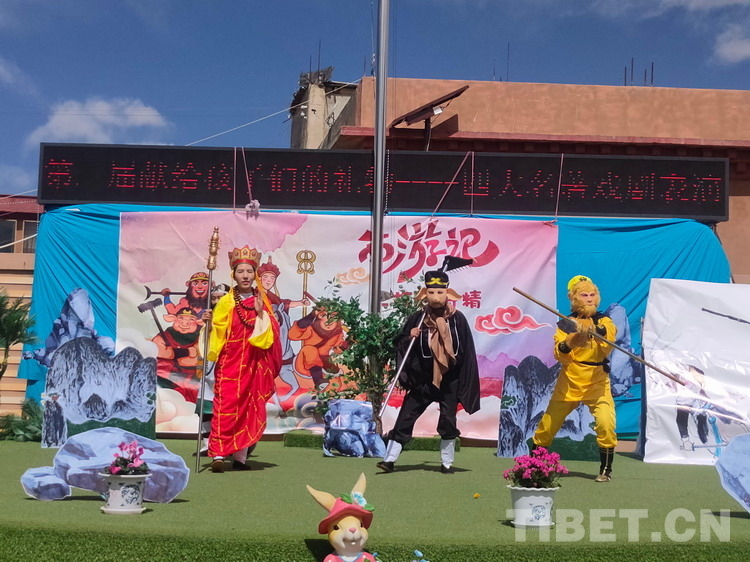 藏語版《西游記之三打白骨精》按原著還原了唐僧師徒四人的這段經(jīng)歷,別樣風(fēng)趣的本地藏語方言對話、一波三折的故事情節(jié)贏得了觀眾的熱烈掌聲?!度龂萘x之桃園三結(jié)義》戲劇情節(jié)中,劉備、關(guān)羽和張飛三人肝膽相照、取長補短、互改缺點,以引人入勝的小故事引導(dǎo)孩子們陶冶道德情操、多交志同道合的朋友。