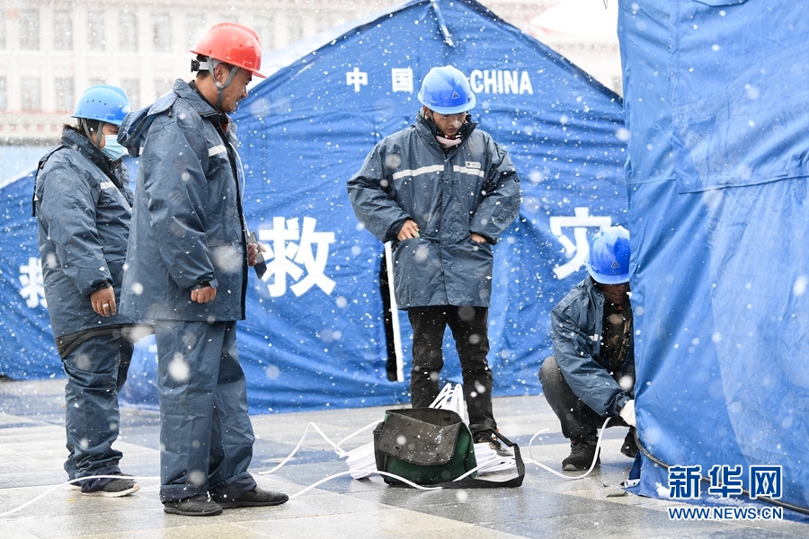 為了點(diǎn)亮災(zāi)區(qū)首夜,國家電網(wǎng)青海省電力公司組織143名應(yīng)急搶修人員,爭(zhēng)分奪秒為安置點(diǎn)通電。