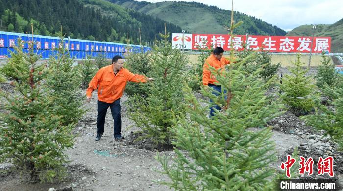 記者在試驗(yàn)基地現(xiàn)場(chǎng)看到,因施工開(kāi)挖的草甸被切割成正方形,整齊堆放在一起,通過(guò)噴淋系統(tǒng)不時(shí)澆水。一旁的表土養(yǎng)護(hù)及苗木驗(yàn)證試驗(yàn)基地上,因施工開(kāi)挖的表土也被集中堆放、攤平,經(jīng)過(guò)營(yíng)養(yǎng)培育后,栽種了白樺、冷杉、側(cè)柏、高山柳等多種高原樹(shù)木。