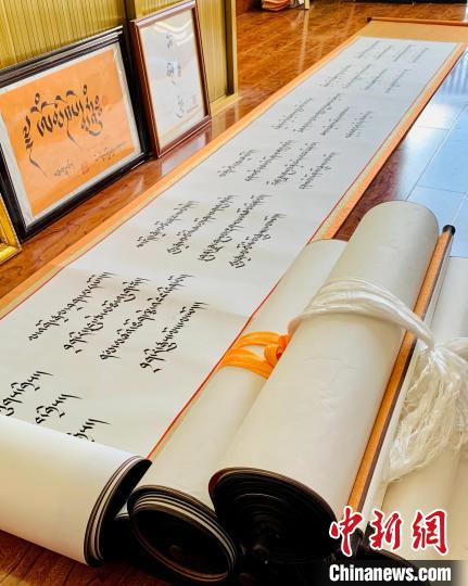 圖為《康巴拉伊》藏文書法長卷其中一卷。 治多縣唐蕃古道文化博物館供圖