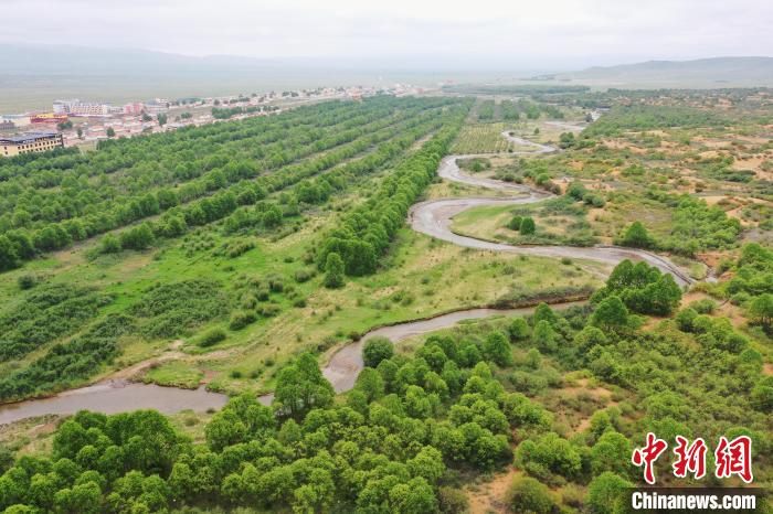 圖為航拍黃沙頭防沙治沙區(qū)植被。馬銘言 攝