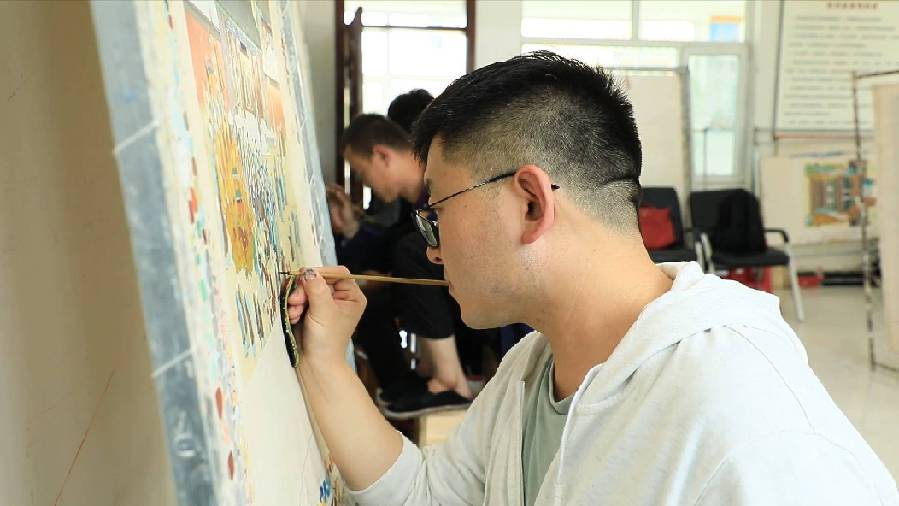 在同仁市隆務(wù)鎮(zhèn)吾屯下莊村的熱貢龍樹畫苑里,170余名學(xué)生在這里學(xué)習(xí)唐卡的制作技藝。他們手拿畫筆,眼神堅定,專心細致地落下每一筆。