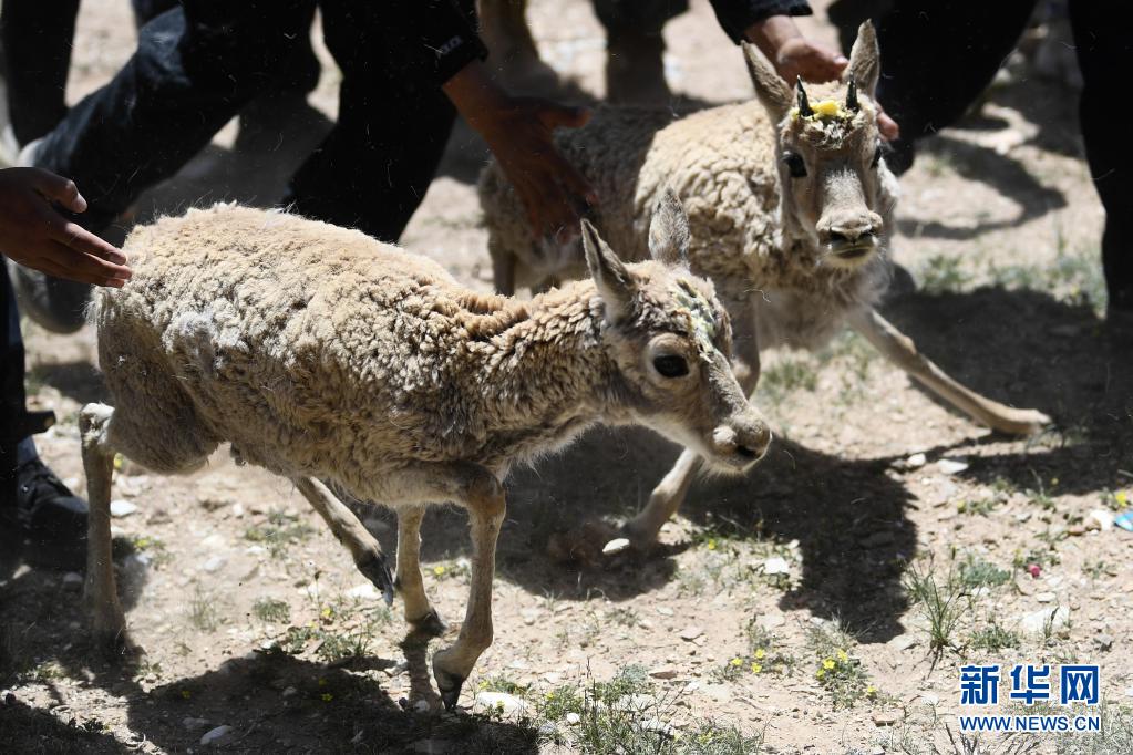 7月7日,在可可西里索南達(dá)杰保護(hù)站野生動物救助中心,藏羚羊被放歸大自然。新華社記者 張龍 攝