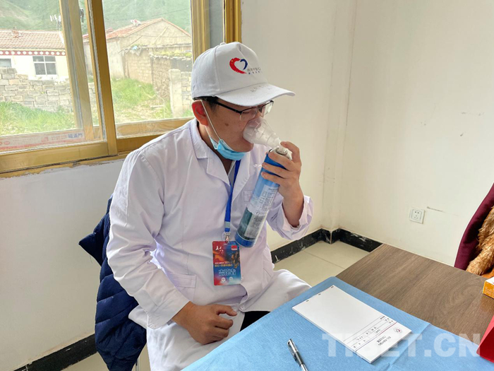 圖為石少輝大夫在吸氧(組委會(huì)供圖)