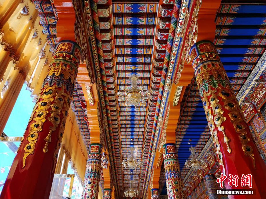 圖為扎西多卡瑪?shù)畋皇澜缂o(jì)錄認證機構(gòu)(WRCA)認證為彩繪面積最大的單體藏傳佛殿建筑。張?zhí)砀?攝