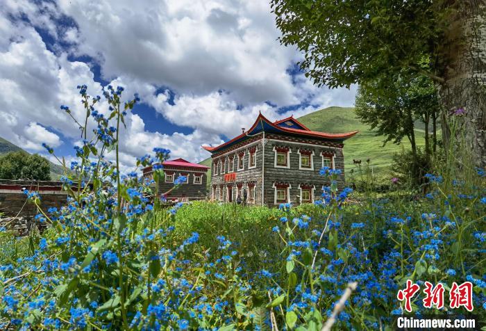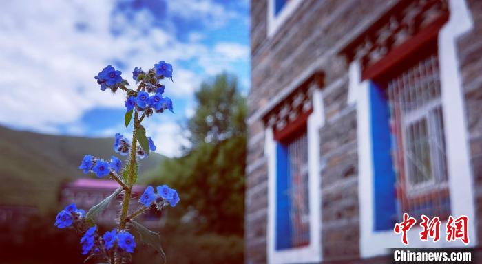 藏式民居旁盛開(kāi)的小藍(lán)花。劉忠俊 攝