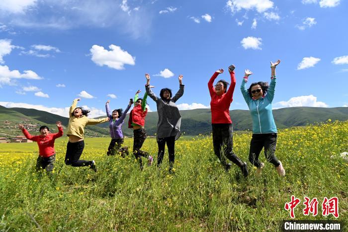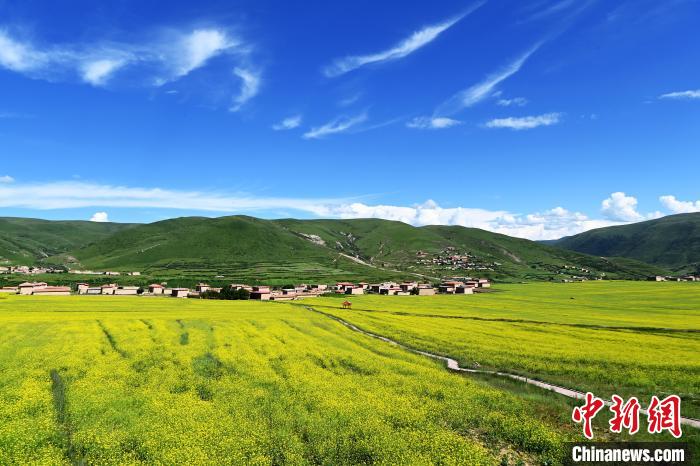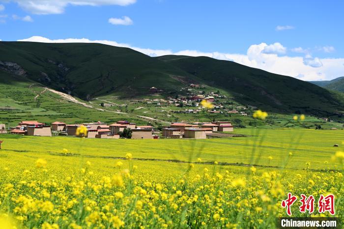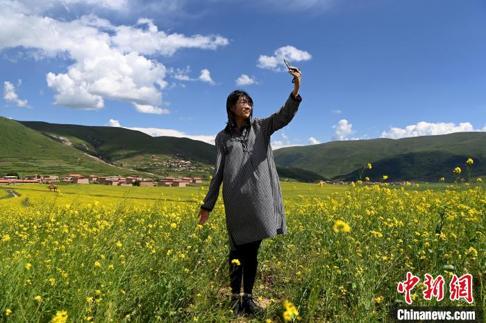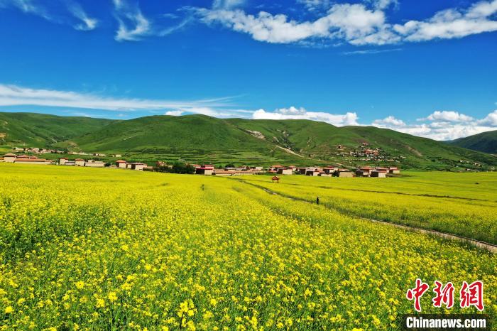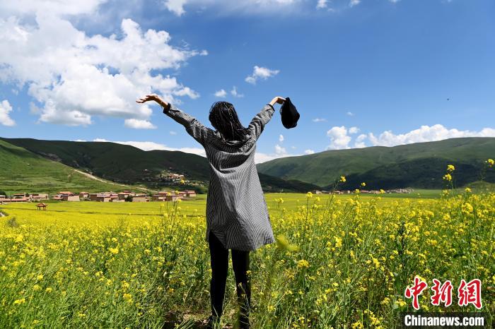 7月21日,四川省阿壩藏族羌族自治州阿壩縣麥昆鄉(xiāng)蠶不扎村高原油菜核心示范基地內(nèi),盛開(kāi)的萬(wàn)畝高原油菜花海吸引游客前來(lái)觀光打卡。