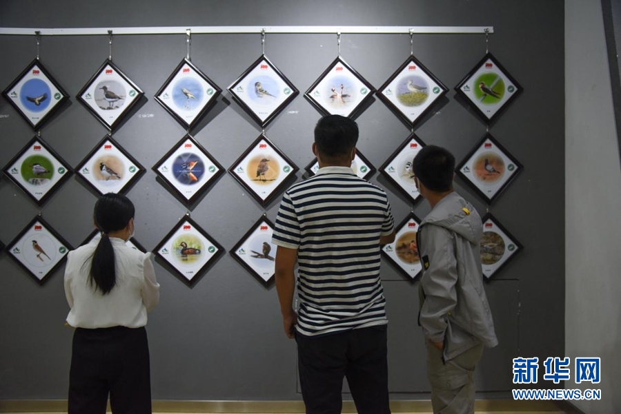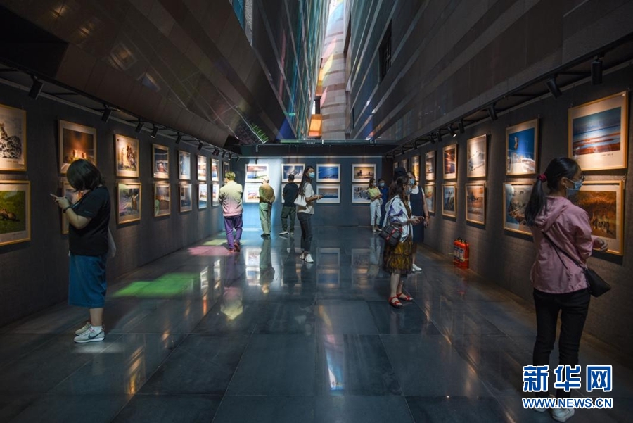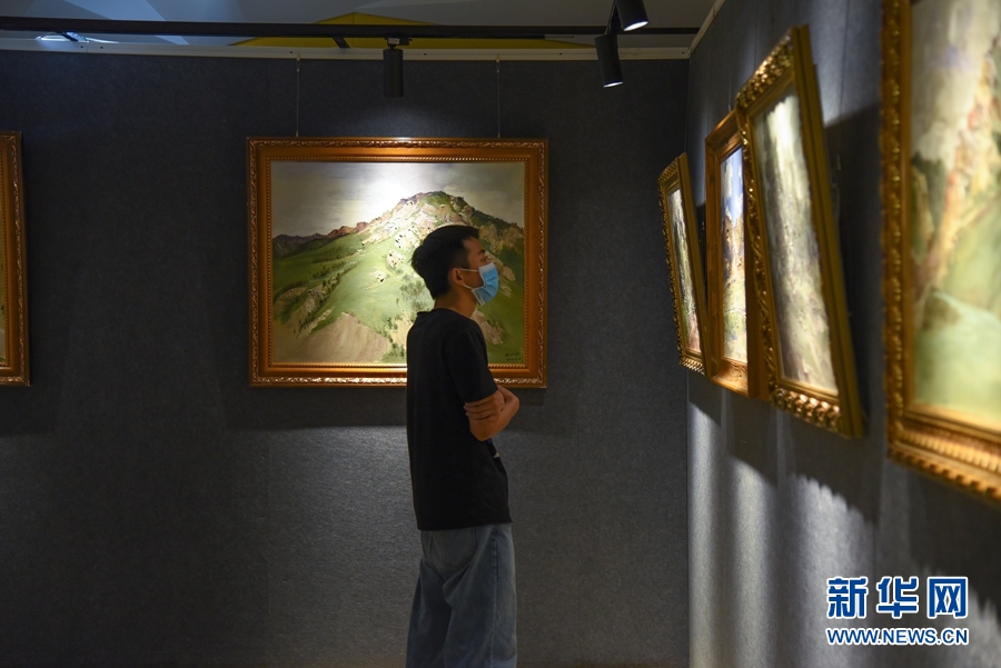 8月5日,觀眾在首屆祁連山國家公園青海片區(qū)生態(tài)藝術展欣賞展出的作品。新華網(wǎng) 齊雨萌 攝