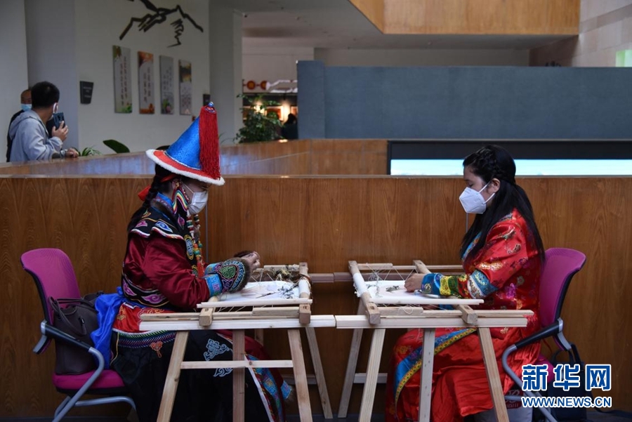 非遺祁連山板塊現(xiàn)場,海西蒙古族藏族自治州刺繡傳承人進行非遺技藝展示。新華網(wǎng) 齊雨萌 攝