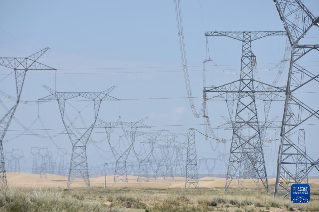 這是9月1日拍攝的位于青海省海南藏族自治州共和縣的青豫直流工程輸電線路。新華社記者 解統(tǒng)強(qiáng) 攝