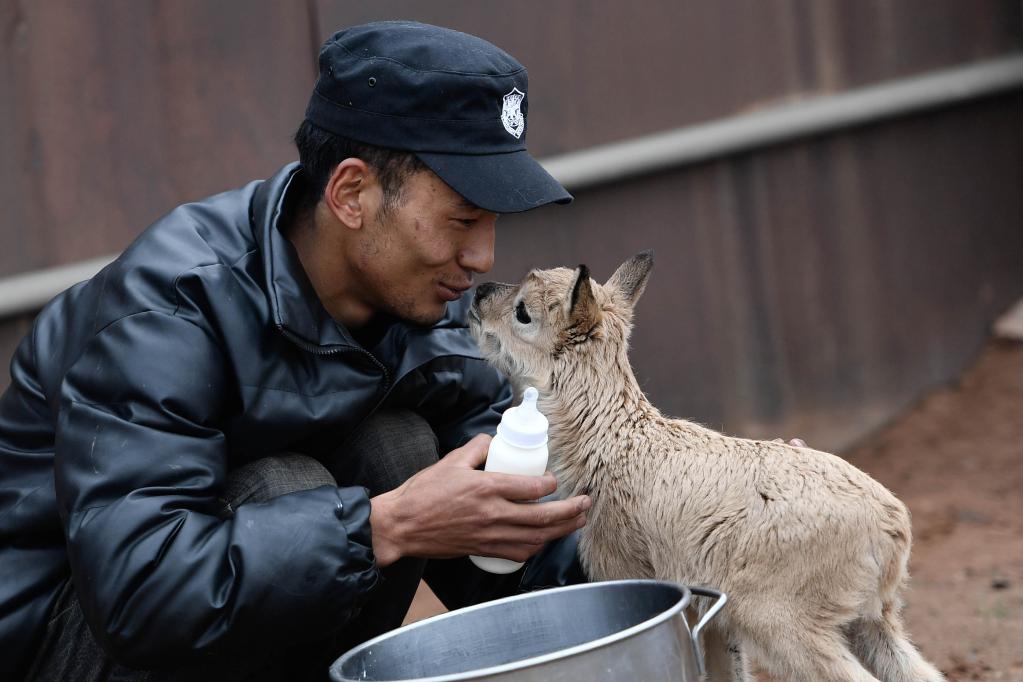 在可可西里索南達(dá)杰保護(hù)站,修建了野生動(dòng)物救助中心。巡山隊(duì)員們義務(wù)當(dāng)起“奶爸”,照顧著與羊群走失、失去“媽媽”的藏羚羊幼仔。