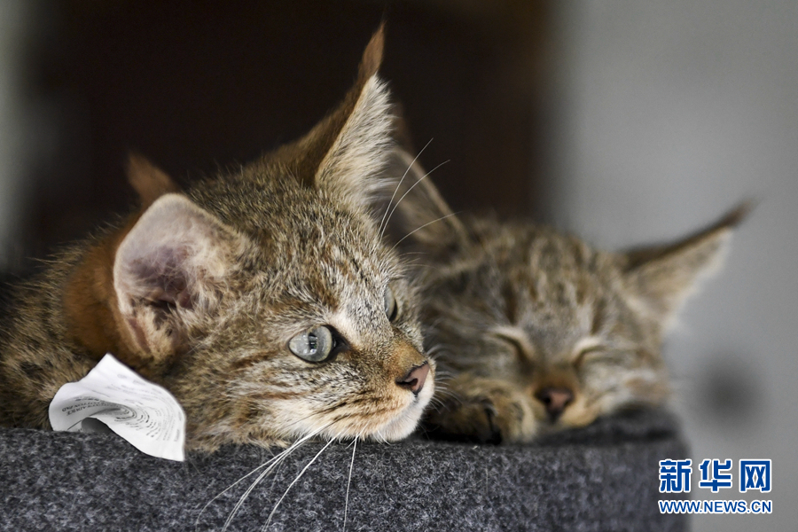 這是9月30日在西寧野生動(dòng)物園拍攝的兩只人工救助的荒漠貓幼崽。新華社記者 張龍 攝
