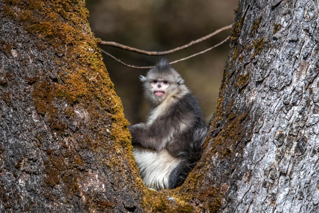 滇金絲猴分布在我國喜馬拉雅山南緣橫斷山系的云嶺山脈,金沙江、瀾滄江之間面積約2萬平方公里的區(qū)域內(nèi)。這些“雪山精靈”長年生活在人跡罕至的高山地帶,堪稱世界上除人類以外棲息海拔最高的靈長類動物。