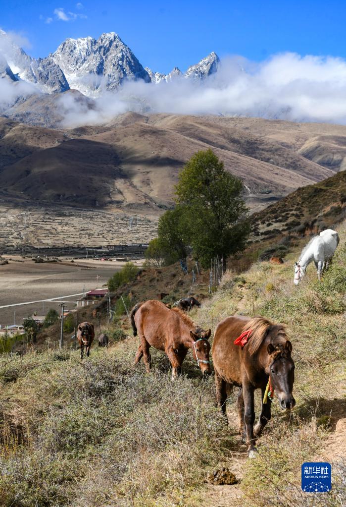 在甘孜縣來馬鎮(zhèn)格通村拍攝的馬群(10月25日攝)。新華社記者 王曦 攝