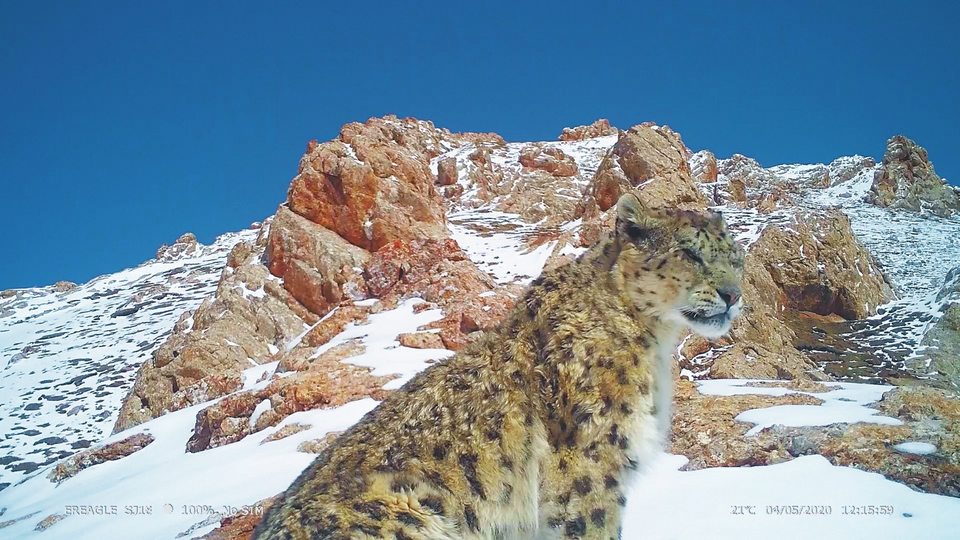 紅外相機拍攝到的雪豹。山水自然保護中心供圖